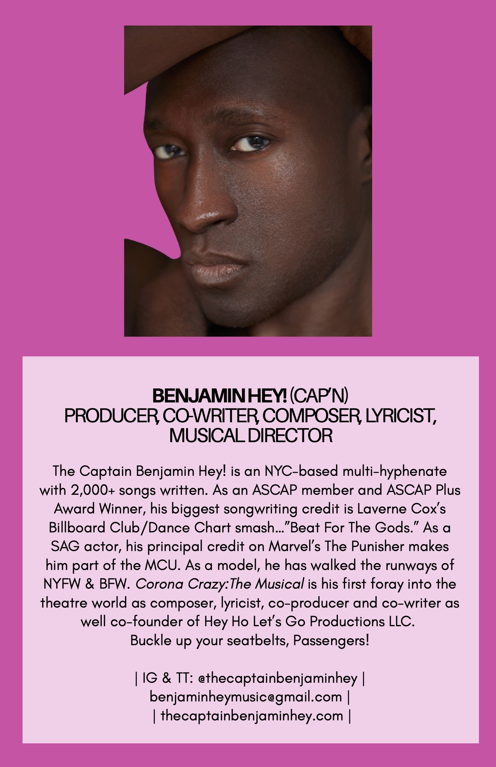 When I shared the music with my friend and collaborator, writer Derek Denckla, he said, “Ben, this is part of a much larger story.” Even though he was in L.A. and I was in New York, we built the show together over Zoom — fitting for a piece born from isolation. That project became…Corona Crazy: The Musical
