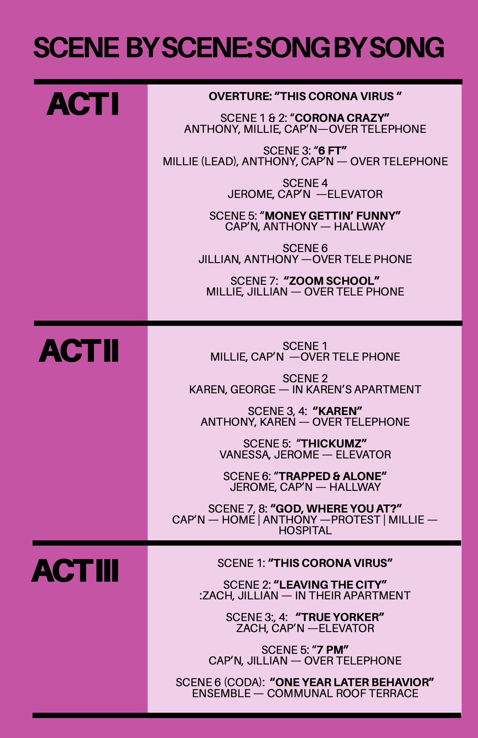 If you have any questions, please reach out to me at: coronacrazythemusical@gmail.com.